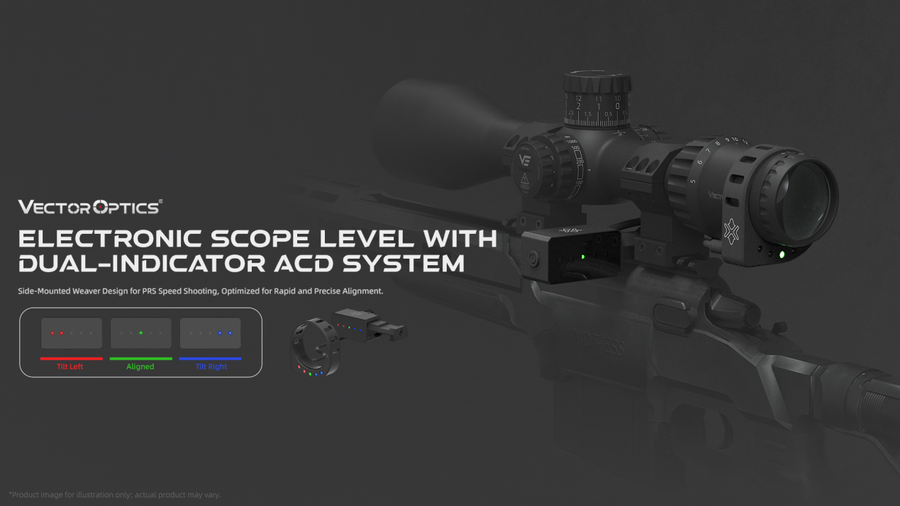 The dual-sided LED indicators provide immediate leveling feedback on both the eyepiece and device body, allowing shooters to correct rifle cant without breaking their cheek weld. The system features five adjustable sensitivity levels, enabling users to customize the offset angle settings to match their specific precision requirements.