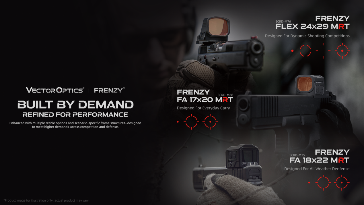 Frenzy Flex 18X22 MRT(SCRD-M75): Outdoor Rugged Model, Engineered with a high-shock resistance chassis specifically reinforced to withstand heavy recoil and extreme vibrations, ensuring a consistent zero in harsh outdoor environments.