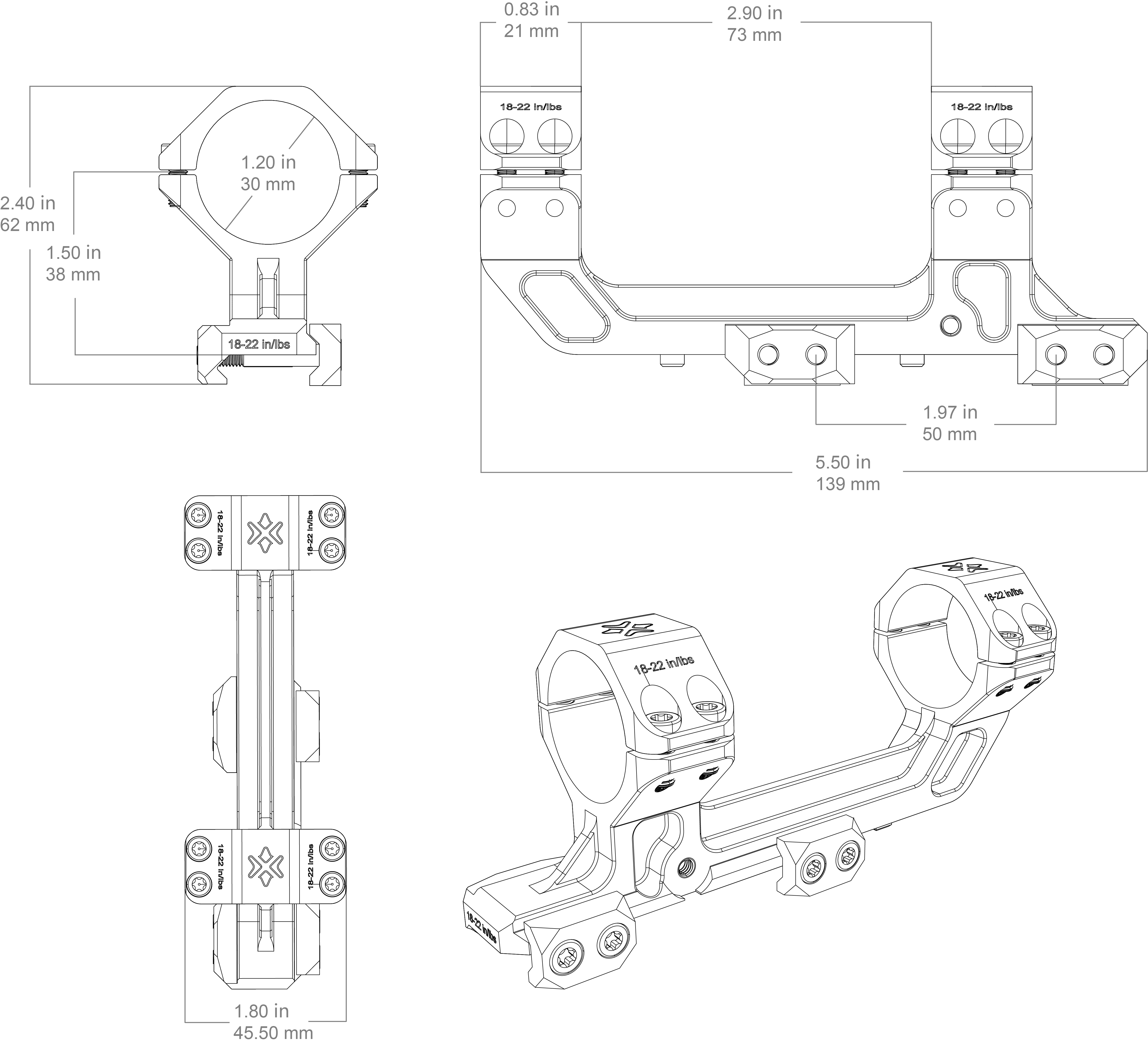 0 MOA Type, AR Platform Tactical Picatinny Mount, Four Screws Per Ring 38mm 1.5in Bottom to Ring Center, Extremely Accurate w/ Full CNC Machined Light Weight, 21mm Picatinny Mount with Two Crossing Bolts & Anti-Retreat Bar