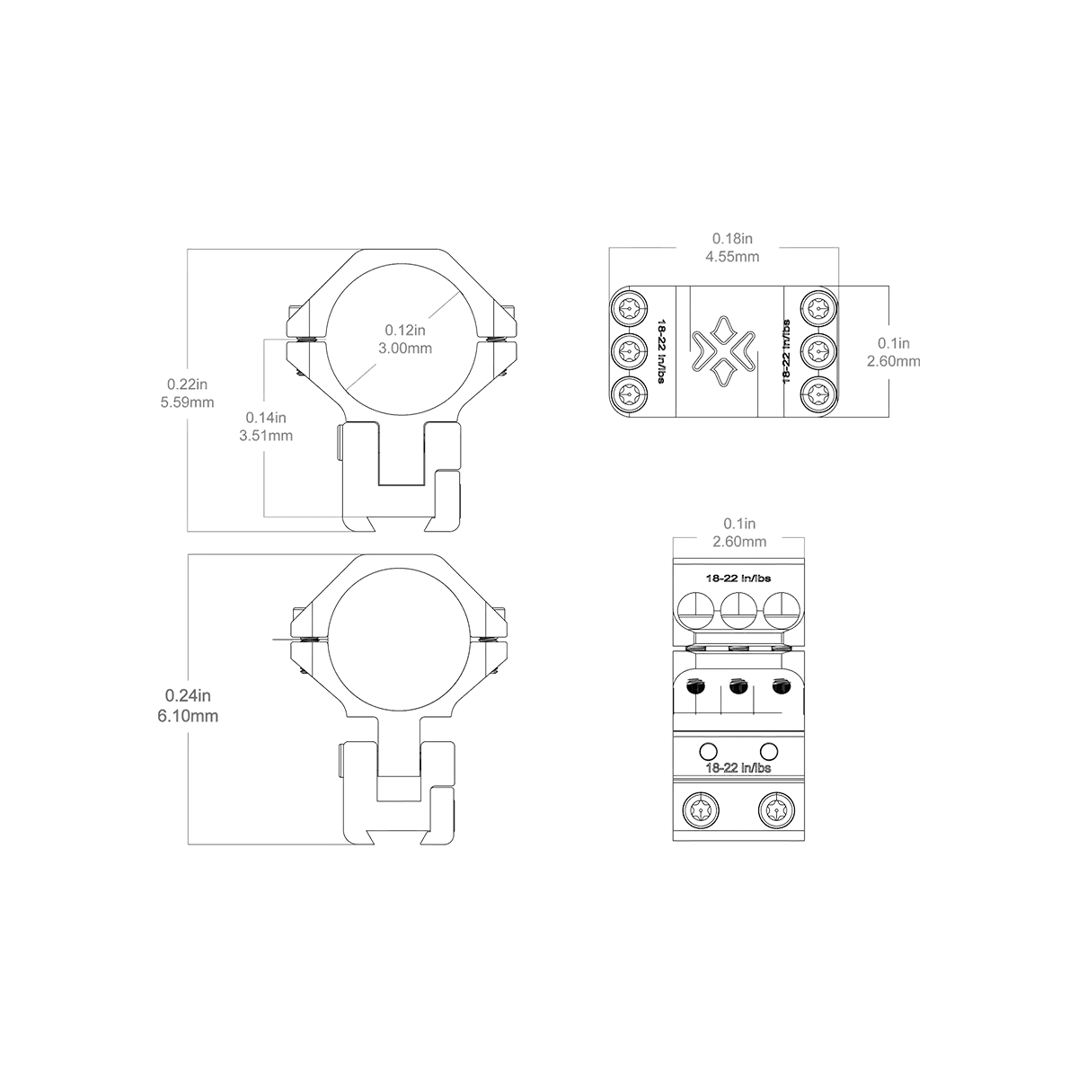 | Torque | 18-22 in / lbs (2.0–2.5 N·m) |