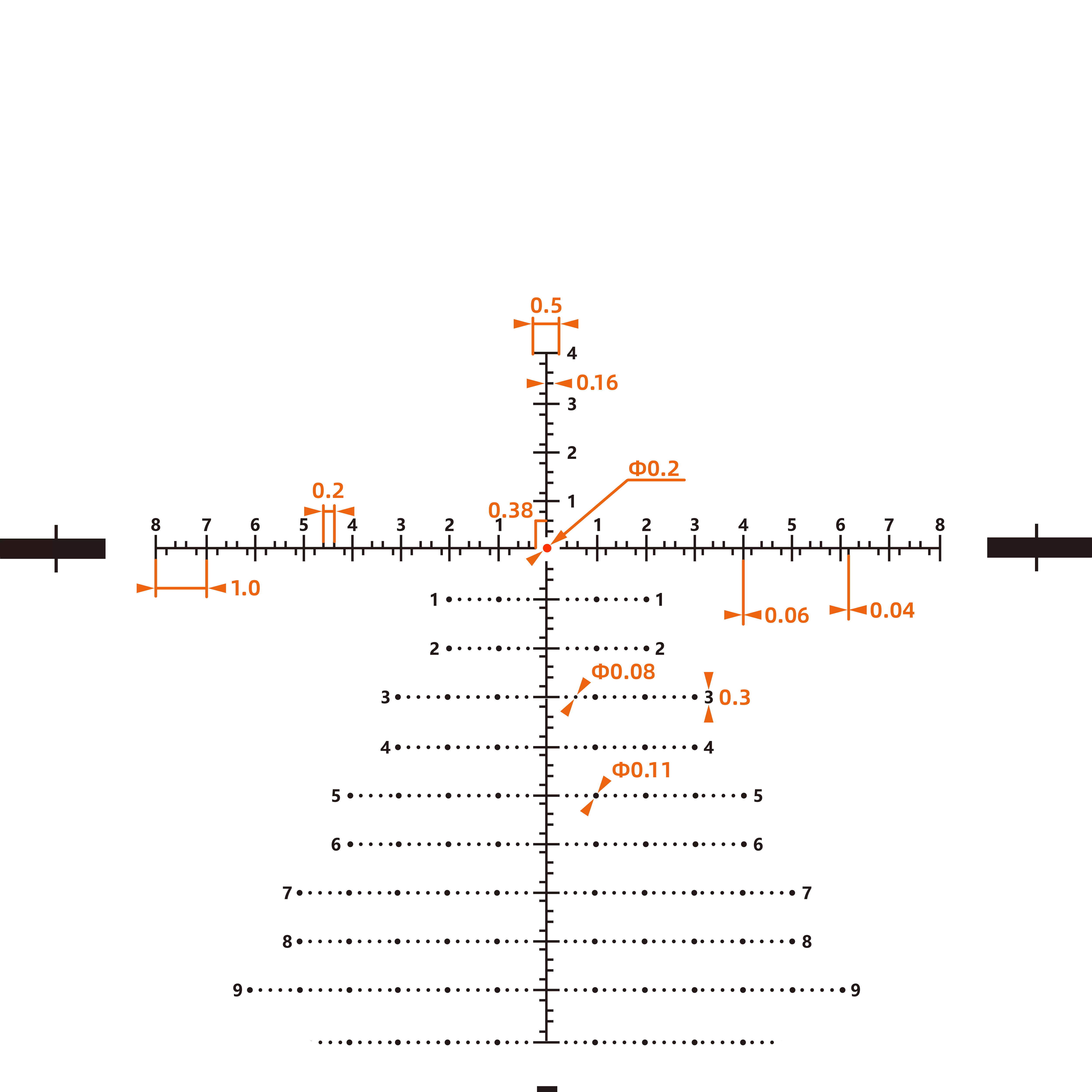 VCT-34 FFP Reticle, 0.155 MIL Center Dot, 0.2 MIL Hashmark Increment, Christmas Tree Pattern, Designed for PRS (Precision Rifle Shooting) 34mm Monotube Maximizes Elevation Adjustment Range to 34MIL, 56mm Large Objective Lens for Bright Images German Schott HT Glass with VePRO FMC Guarantees 90% Light Transmission for Crystal Clear and Bright Images Audible Turret Adjustments Avoid over or under Dialing, LRZ Turret System Design for PRS Competition